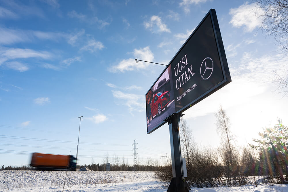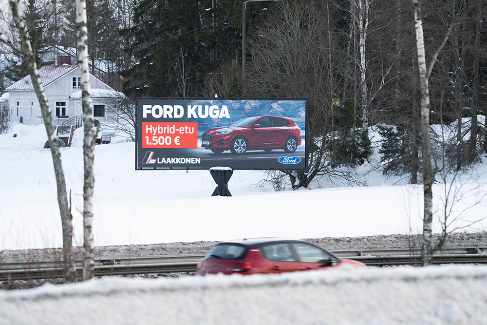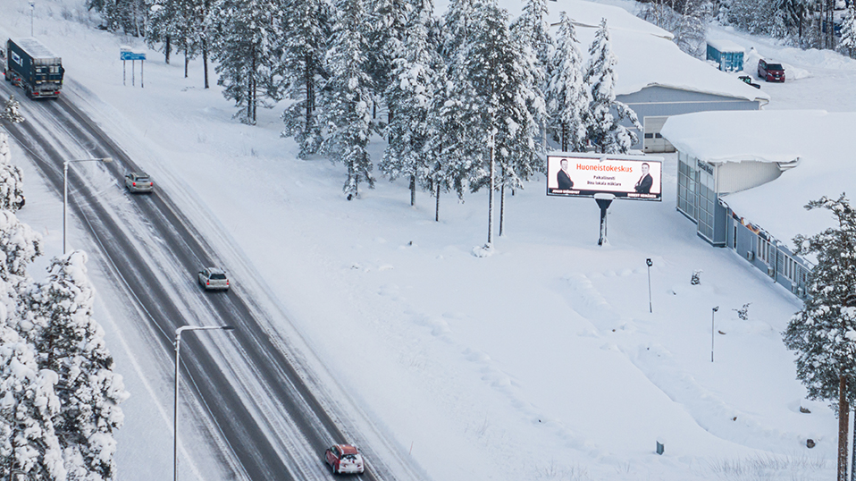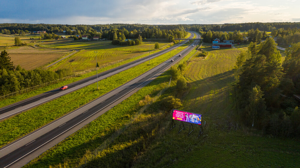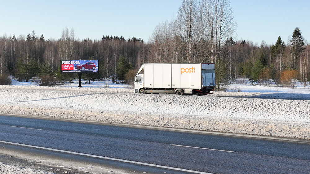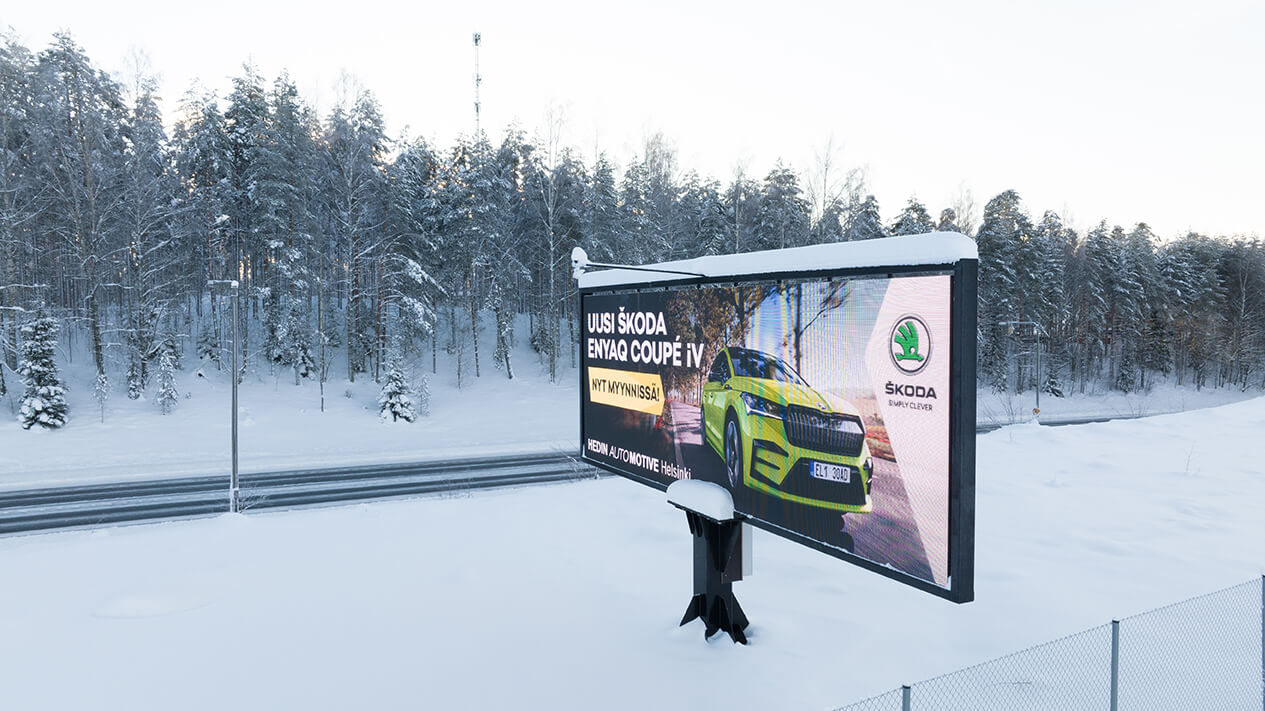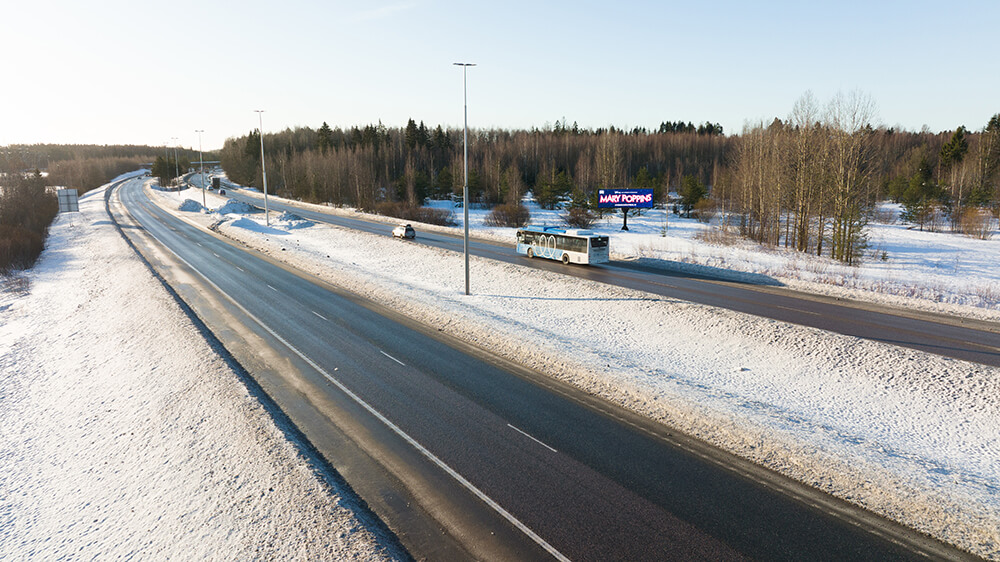 Med hjälp av våra digitala skärmar når du kunder som kör i Nyland.