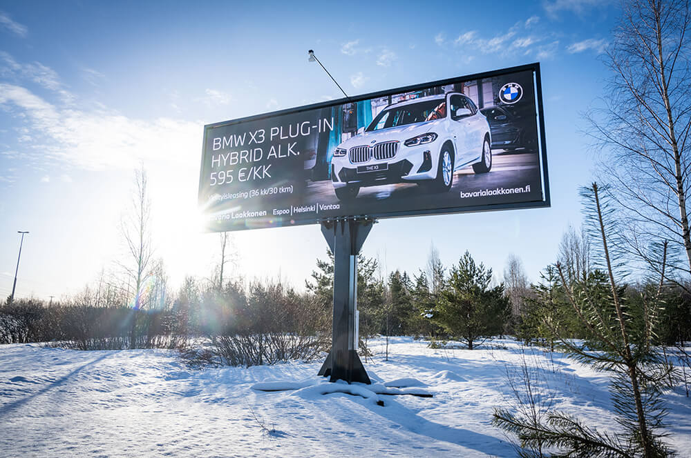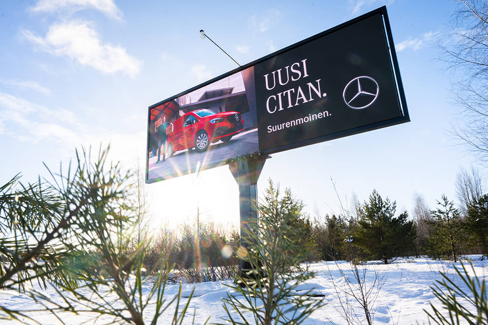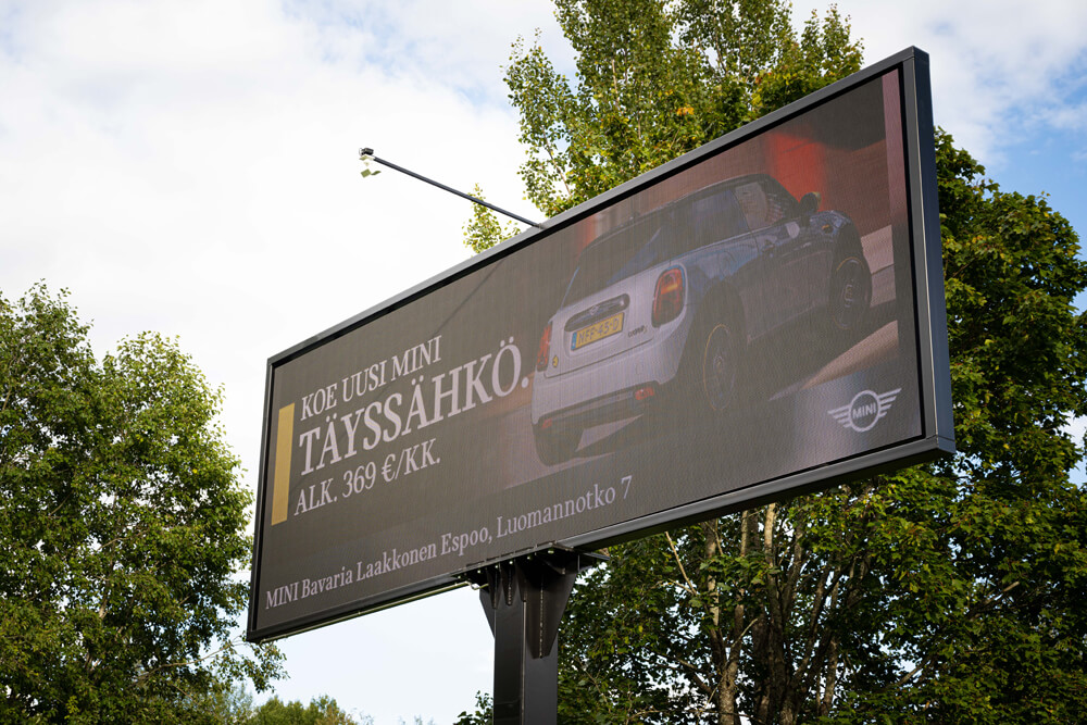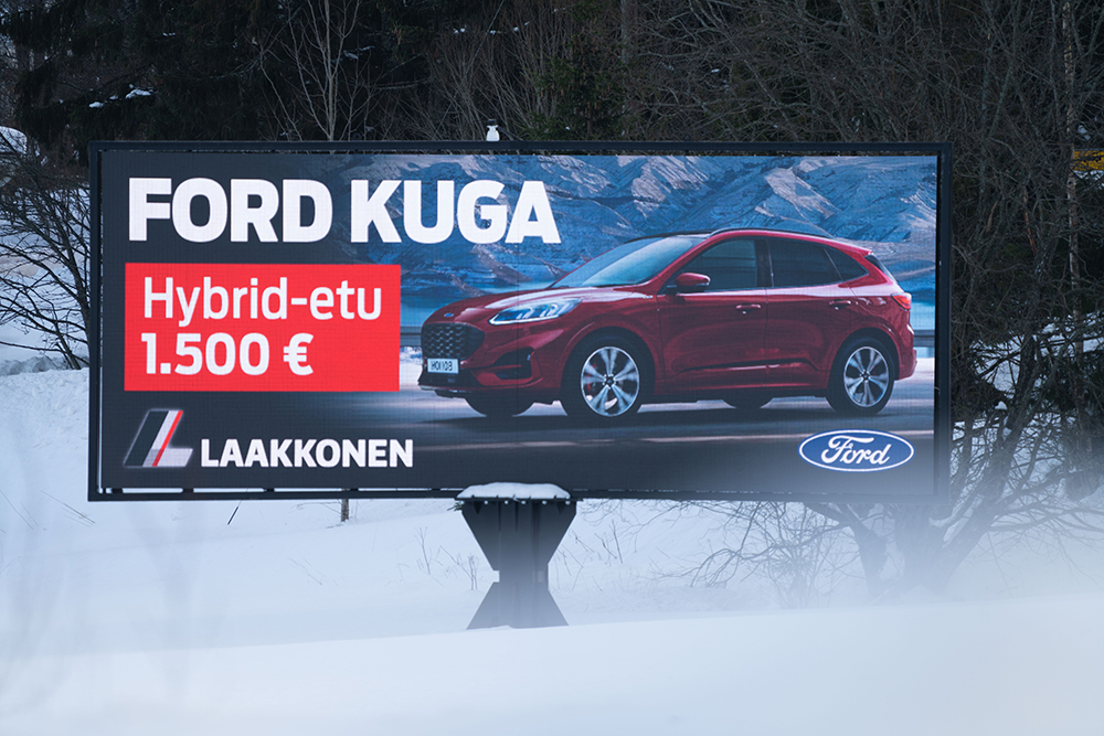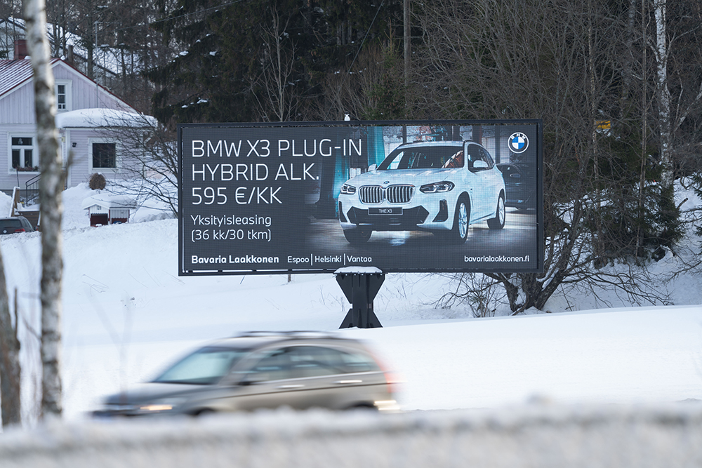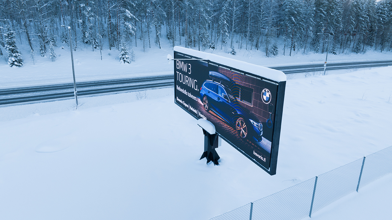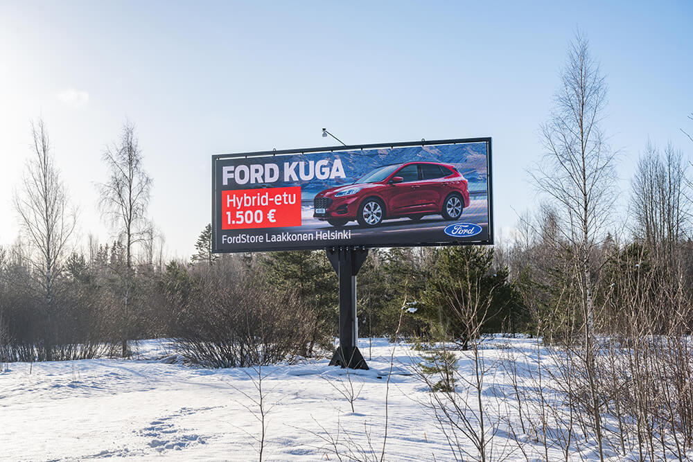 Med hjälp av våra digitala skärmar når du kunder som kör i Nyland.
