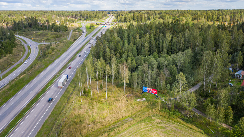 Sibbo, Borgå-motorväg. Det är även möjligt att köpa synlighet endast för Sibbo-skärmen